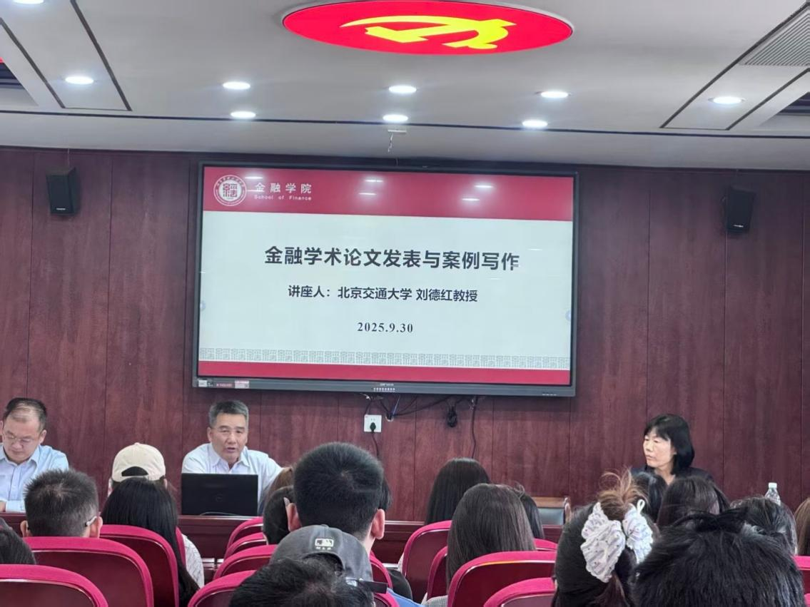 2025年9月30日,北京交通大学刘德红教授受邀到访我院,在建树楼 B 座 528 会议室开展以“金融学术论文发表与案例写作” 为主题的专题学术讲座。本次讲座由副院长方磊主持,院长赵紫剑、英国365集团部分教师及 2024 级、2025 级研究生参会。