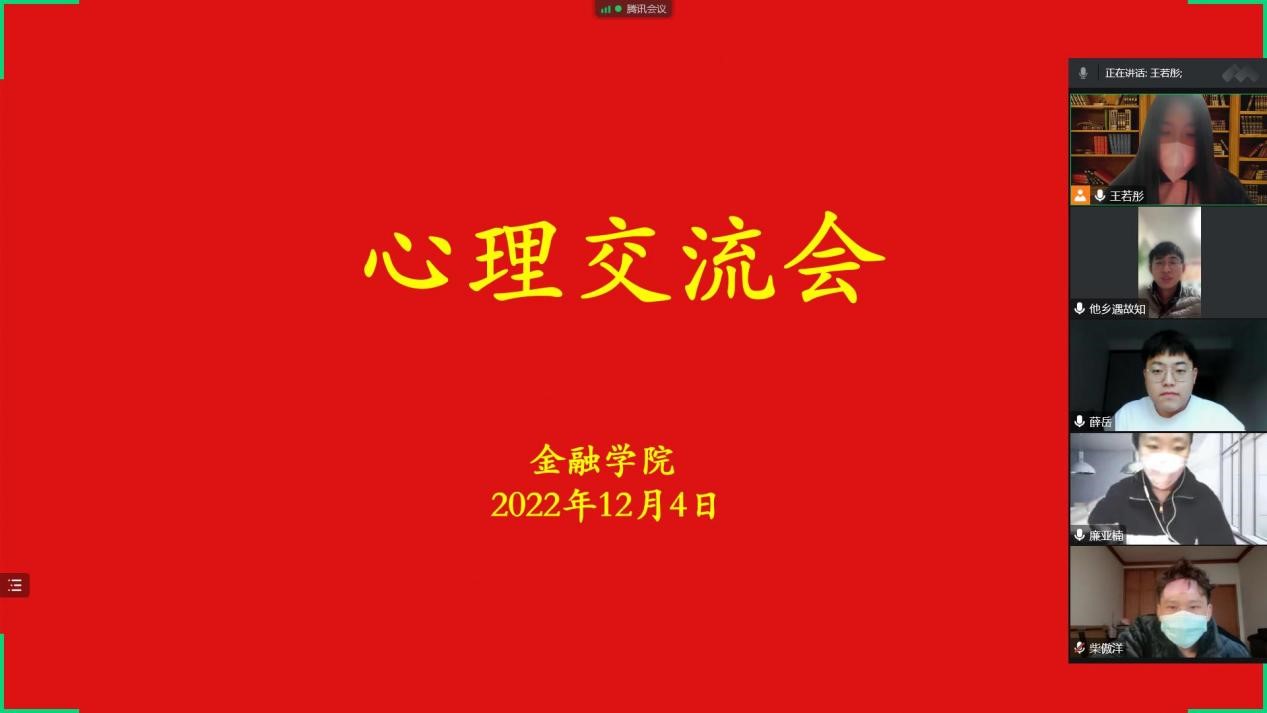 为促进学生身心健康发展,12月4日晚,英国365集团权益服务部及心理调研部于线上联合举办了“美丽心灵”心理交流会,英国365集团20、21、22级家庭经济困难学生参加本次活动。